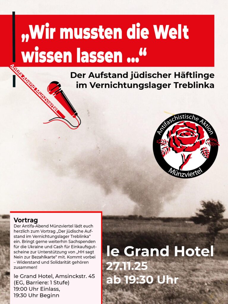Antifa-Abend / 27.11.25 / Vortrag: „Wir mussten die Welt wissen lassen …“. Der Aufstand jüdischer Häftlinge im Vernichtungslager Treblinka